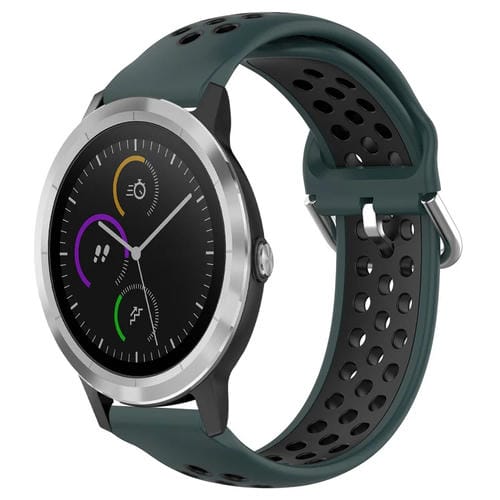 Correa de Reloj para Garmin Vivoactive3 20mm silicona deportiva transpirable perforada (Verde oliva + Negro)
