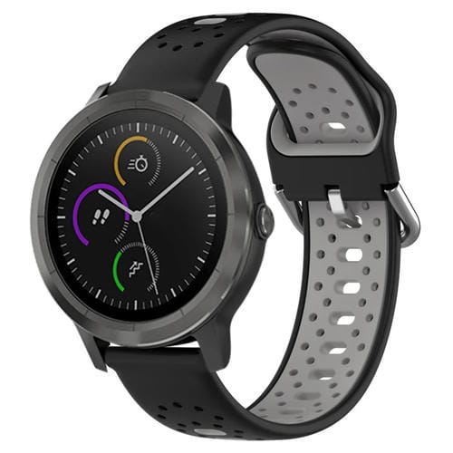 Correa de Reloj para Garmin Vivoactive3 Silicona Bicolor Transpirable 20mm (Negro + Gris)