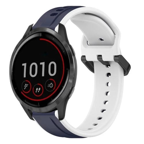 Correa de Silicona para Garmin Vivoactive4 22mm con Bucle Convexo (Azul Medianoche + Blanco)