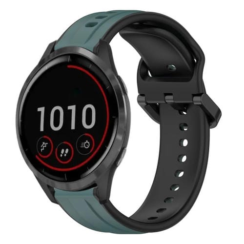 Correa de Reloj para Garmin Vivoactive4 de Silicona Dos Colores con Bucle Convexo 22mm (Verde Oliva + Negro)