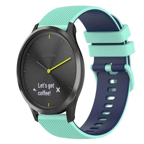 Correa de Reloj para Garmin Vivomove Silicona Dos Colores a Cuadros 20mm (Verde Azulado + Azul)