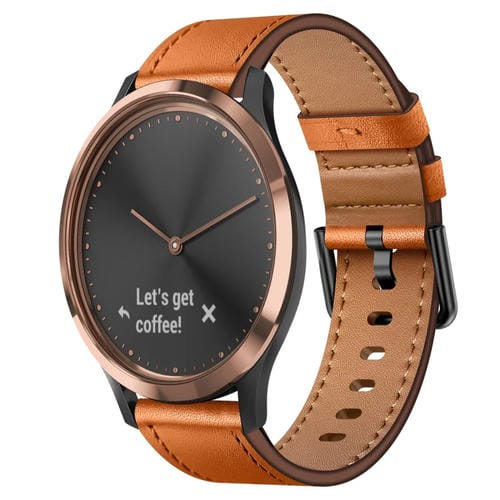 Correa de Reloj de Cuero para Garmin Vivomove Hr 20mm con Interruptor de Botón de Metal (Marrón)