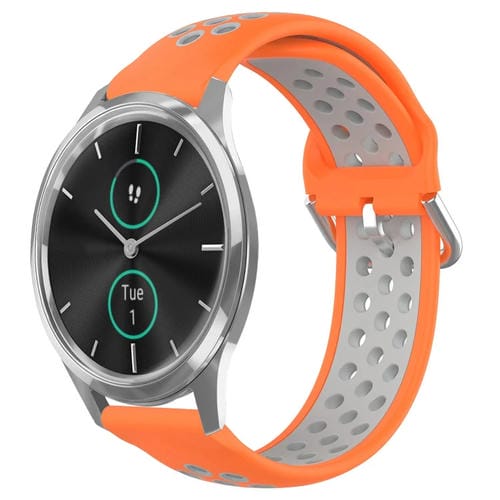 Correa de Reloj para Garmin Vivomove Luxe 20mm Silicona Deportiva Transpirable Perforada (Naranja + Gris)