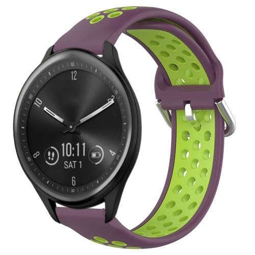 Banda de Reloj de Silicona Deportiva para Garmin Vivomove Sport 20mm Transpirable Perforada (Púrpura + Lima)