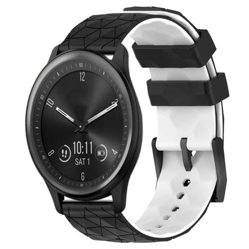 Banda de Reloj para Garmin Vivomove Sport 20mm patrón de fútbol silicona dos colores (Negro + Blanco)