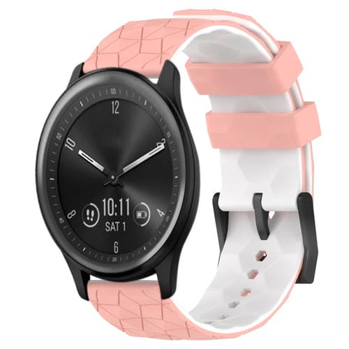 Banda de Reloj Garmin Vivomove Sport 20mm Silicona Dos Colores (Rosa + Blanco) Patrón de Fútbol