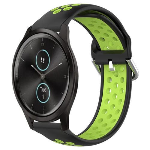 Banda de Reloj Silicona Deportiva para Garmin Vivomove Style 20mm Transpirable (Negro + Lima)