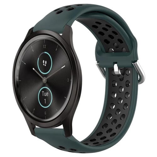 Banda de Reloj para Garmin Vivomove Style 20mm silicona deportiva transpirable perforada (Verde Oliva + Negro)