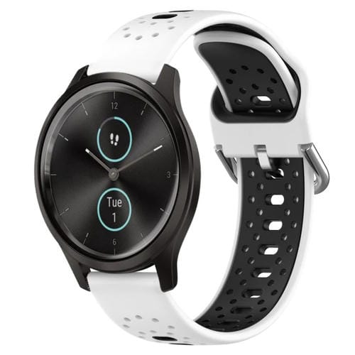 Correa de Silicona para Garmin Vivomove Style 20mm Dos Colores Transpirable (Blanco + Negro)
