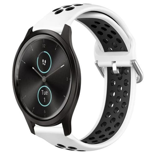 Banda de Reloj Garmin Vivomove Style 20mm Silicona Deportiva Transpirable Perforada (Blanco + Negro)