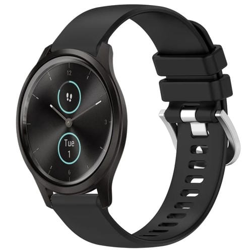 Correa de Silicona para Garmin Vivomove Style y Vivomove Liquid con Hebilla Glossy Silver (Negro)