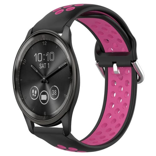Correa de Reloj para Garmin Vivomove Trend 20mm Silicona Deportiva Transpirable Perforada (Negro + Rojo Rosa)