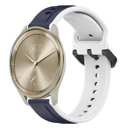 Correa de Reloj para Garmin Vivomove Trend de Silicona Dos Colores 20mm (Azul Medianoche + Blanco)