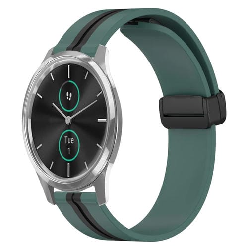 Correa de Silicona para Garminmove Luxe con Cierre Magnético Plegable de 20mm (Verde Oliva + Negro)