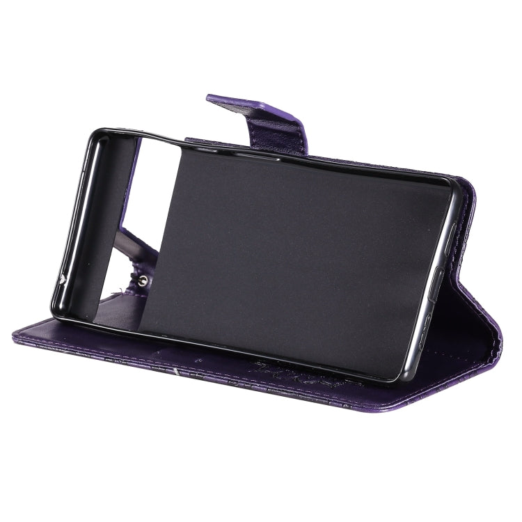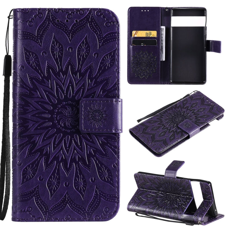 Para Google Pixel 6 Sun Pattern Horizontal Flip Funda de cuero con Tarjeta Slot & Soporte & Wallet & Lanyard (Púrpura)