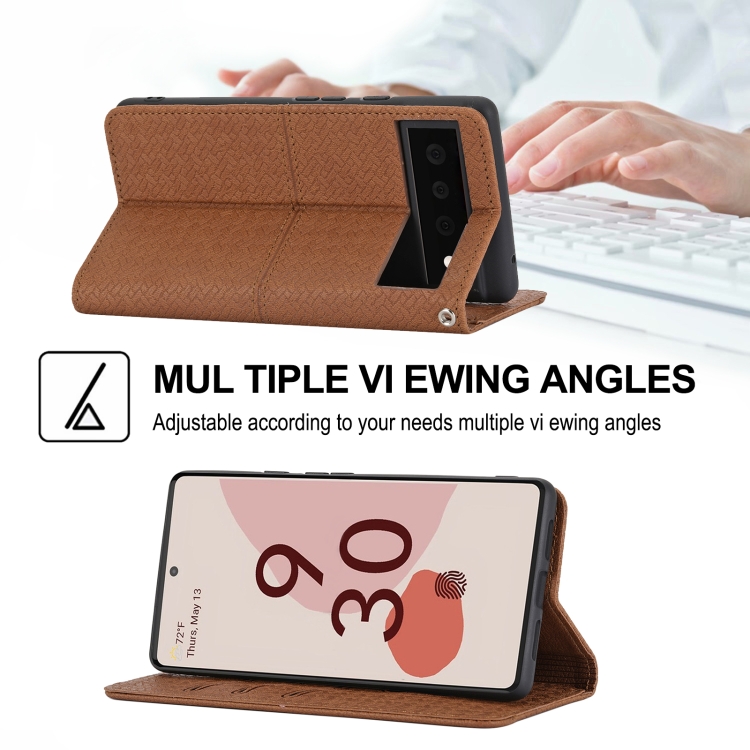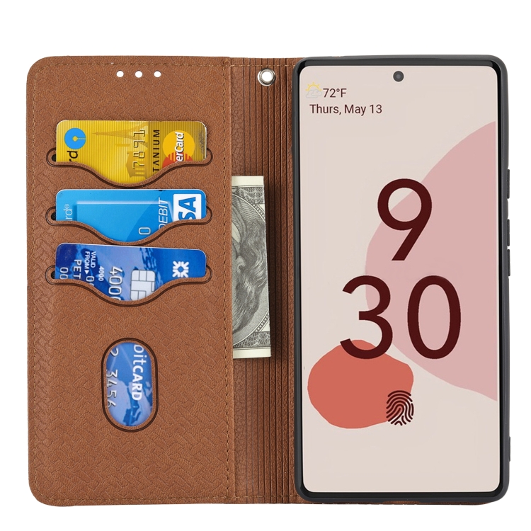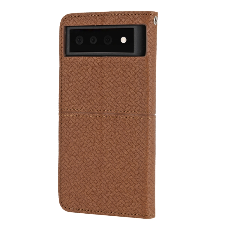 Para Google Pixel 6 Textura tejida Costura magnética Horizontal Flip PU Funda de cuero con soporte y ranuras para tarjetas y Filtera (Brown)