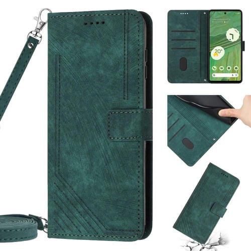Funda de Cuero para Google Pixel 7A con Cordón y Skin Feel Stripe Pattern (Verde)