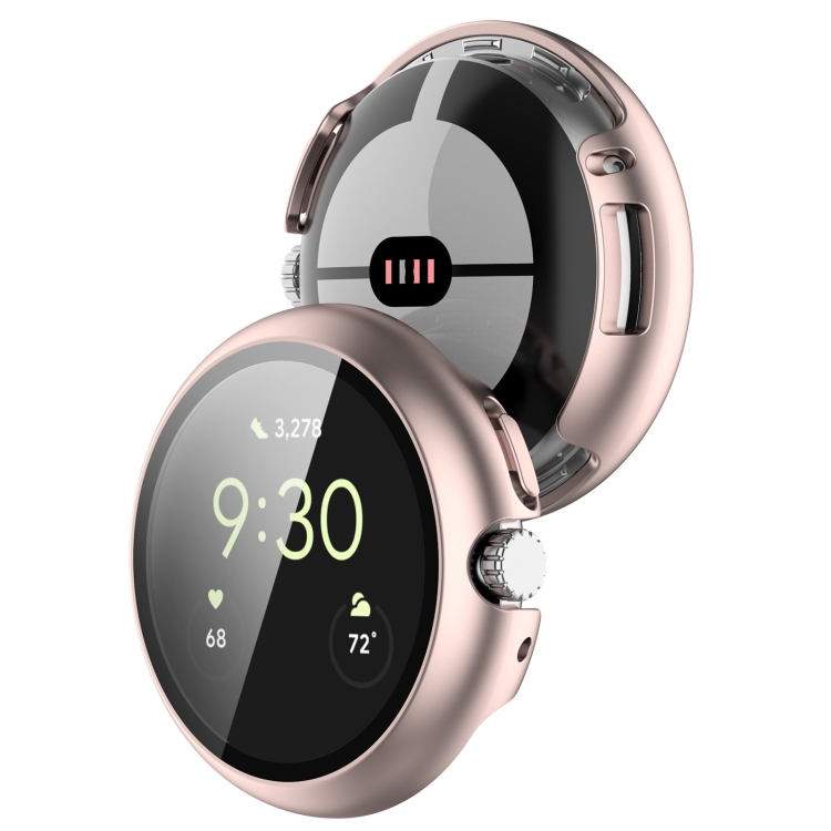 Caja de Reloj para Google Pixel Watch con Película de Vidrio Templado (Oro Rosa)