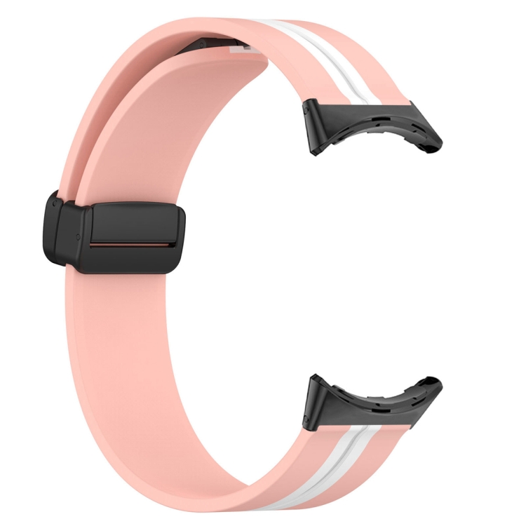Correa de Silicona para Google Pixel Watch con Hebilla Plegable Dos Colores (Rosa Blanco)