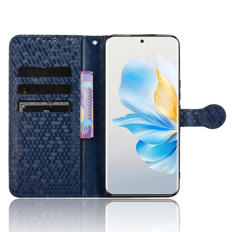 Funda para Honor 100 5G de Cuero con Textura de Punto de Panal (Azul)