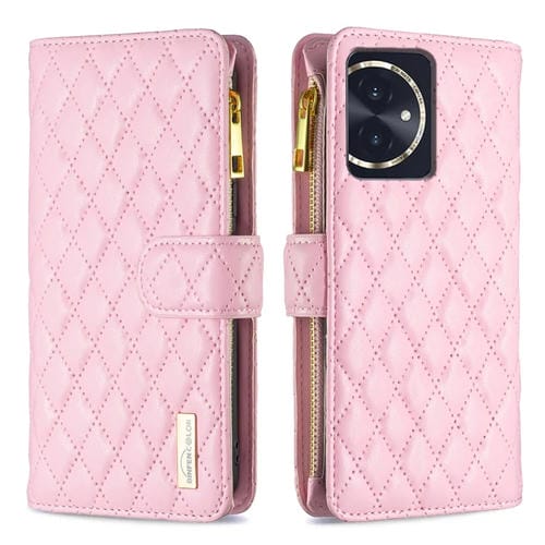 Funda de Cuero con Tapa para Honor 100 Diamond Lattice Zipper Wallet (Rosa)
