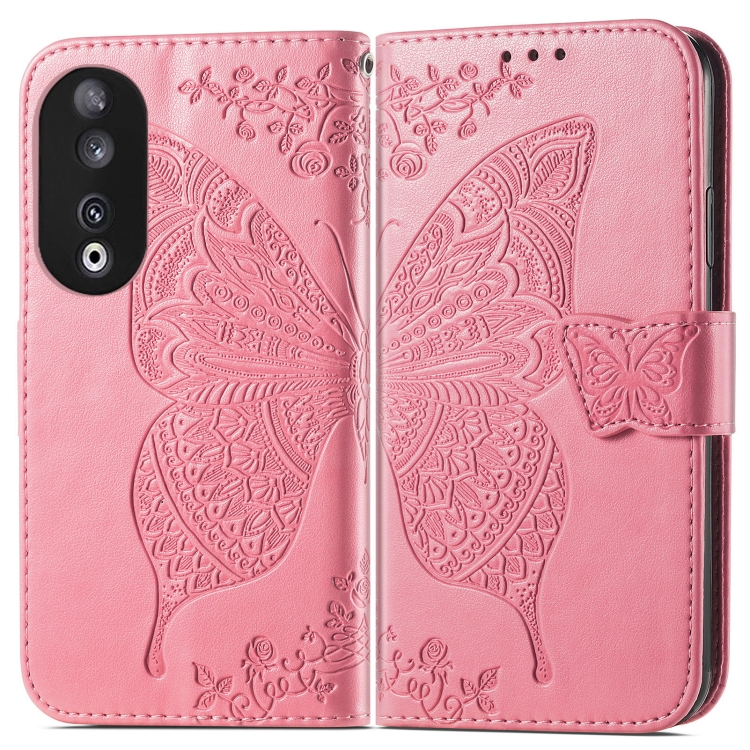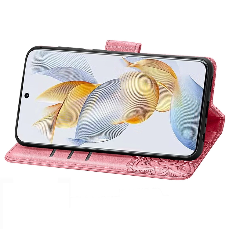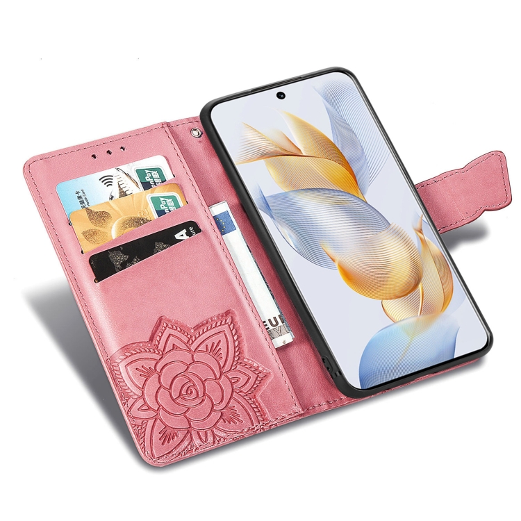 Funda para Honor 100 de Cuero con Relieve Flor y Mariposa (Rosa)