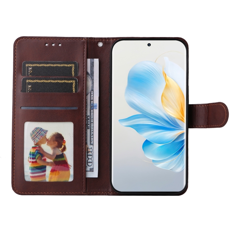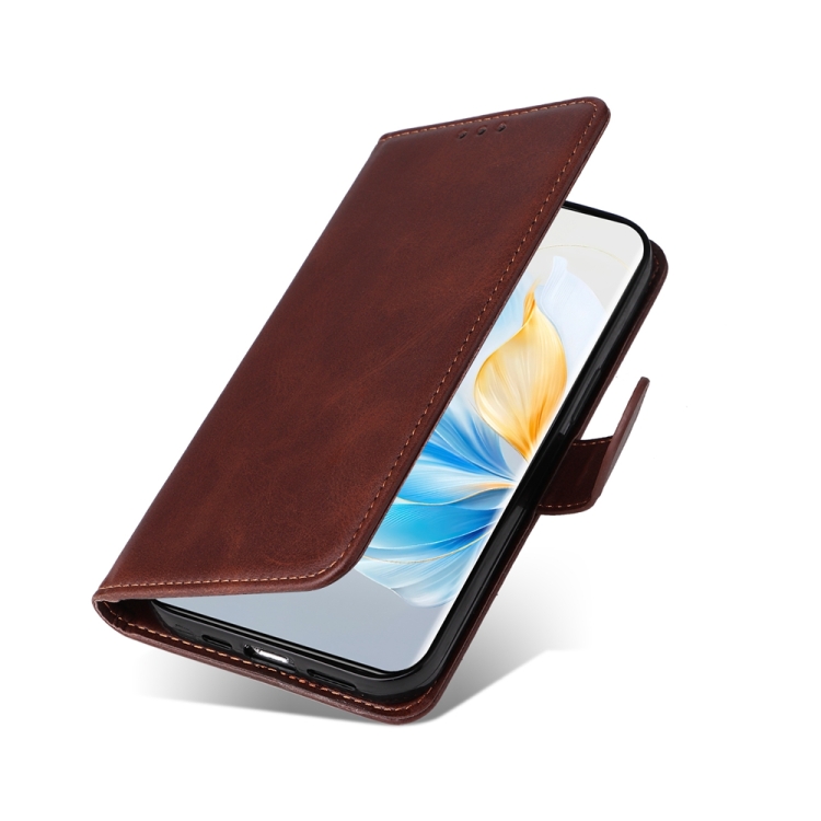 Funda para Teléfono Honor 100 de Cuero con Tapa y Textura de Becerro Clásica (Marrón)