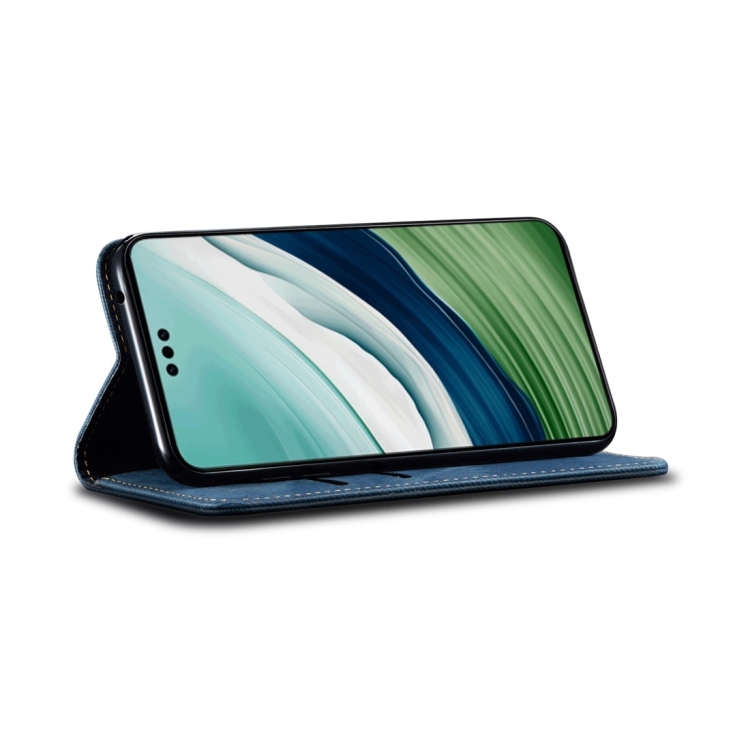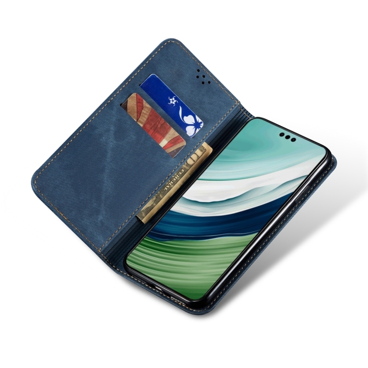 Funda para Honor 100 de Cuero con Tapa y Textura Vaquera (Azul)