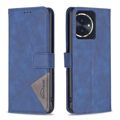 Funda para Honor 100 de Cuero con Textura de Rombo y Hebilla Magnética (Azul)