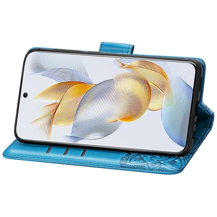 Funda para Honor 100 Pro 5G de Cuero con Relieve Flor de Amor y Mariposa (Azul)