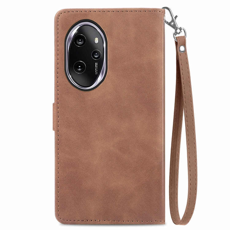 Funda de Cuero para Honor 100 Pro con Cremallera y Flores en Relieve (Marrón)