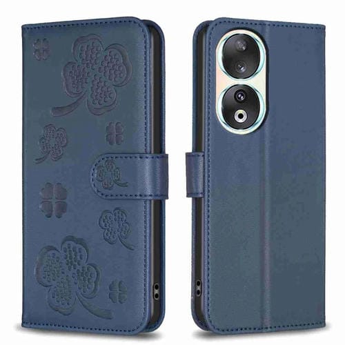 Funda para Honor 90 5G de Cuero en Relieve de Cuatro Hojas (Azul)