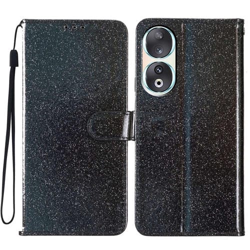 Funda de Cuero con Tapa para Honor 90 con Purpurina en Polvo (Negro)