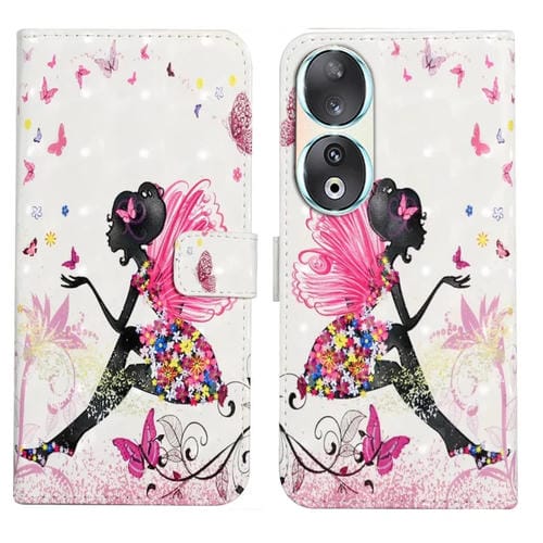 Funda para Honor 90 de Cuero con Dibujo 3D en Relieve al Óleo (Hada de Flores)