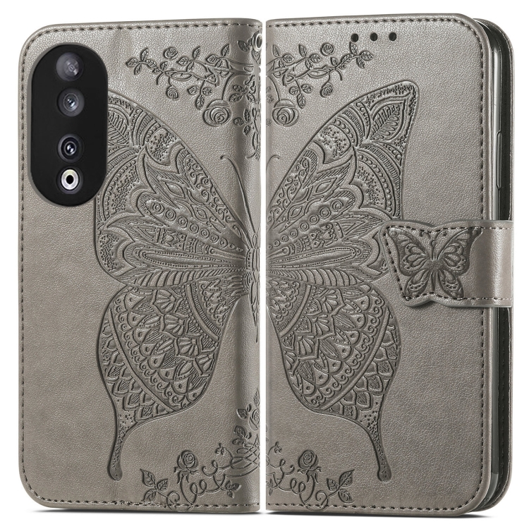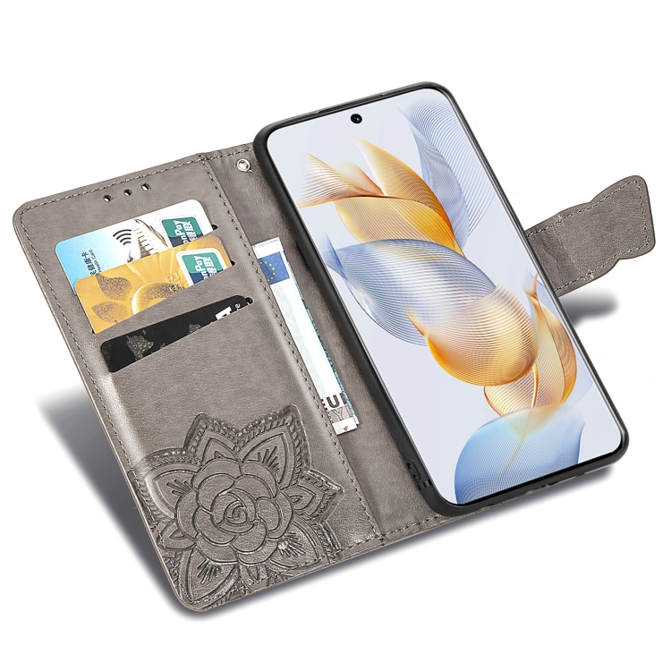 Funda para Honor 90 de Cuero con Relieve de Flor y Mariposa (Gris)