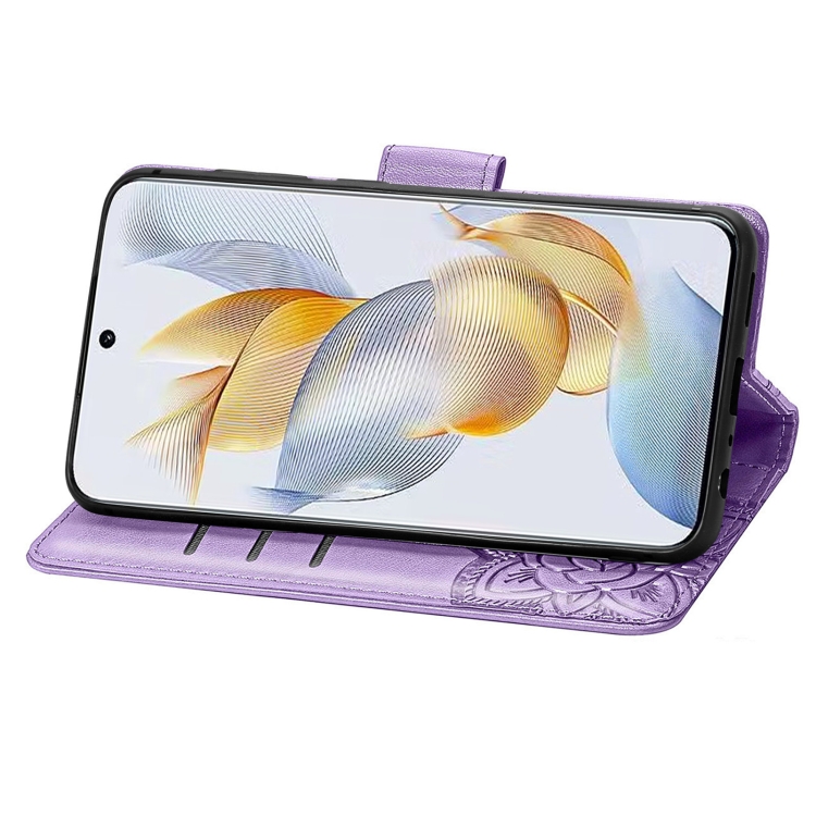Funda para Honor 90 de Cuero con Relieve Flor de Amor y Mariposa (Lavanda)