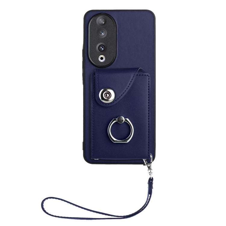 Funda para Honor 90 de PU con Soporte para Anillo y Bolsa para Tarjeta con Cordón (Azul)