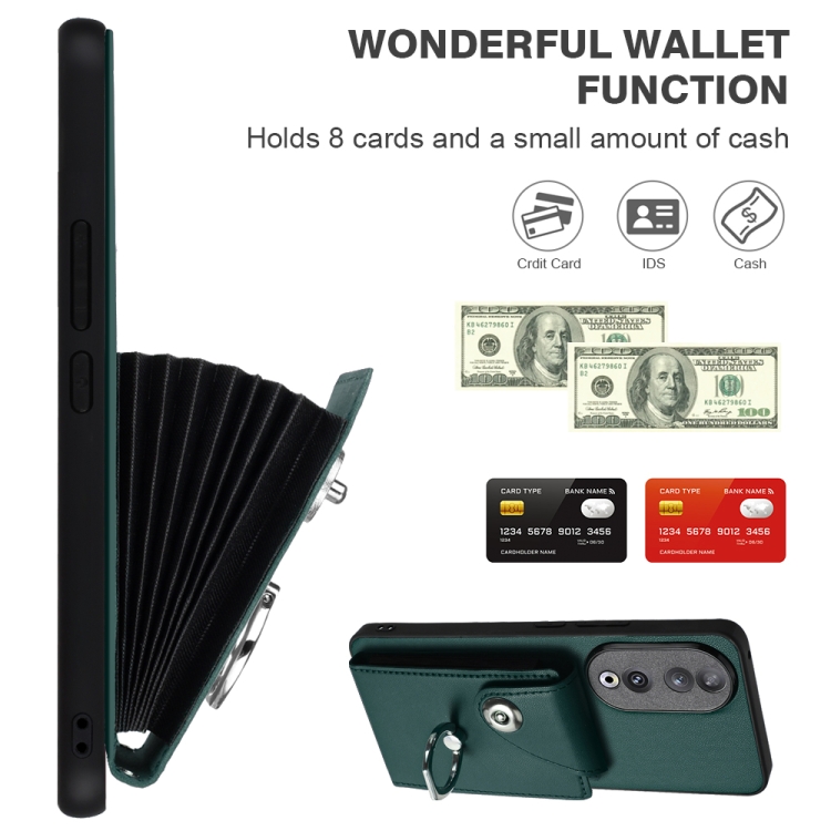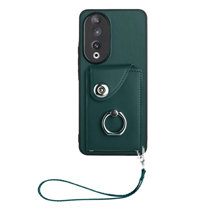Funda para Honor 90 de PU con Soporte para Anillo, Bolsa para Tarjeta y Cordón (Verde)