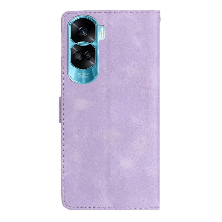 Funda de Cuero para Honor 90 Lite con Estampado de Mariposas y Flores (Púrpura)