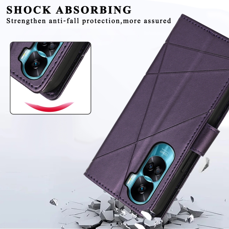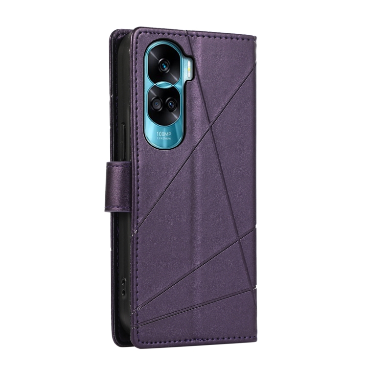 Funda para Honor 90 Lite con Línea en Relieve y Textura de Cuero Genuino PU (Púrpura)