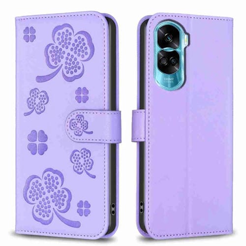 Funda para Honor 90 Lite X50I de Cuero con Relieve de Cuatro Hojas (Púrpura)