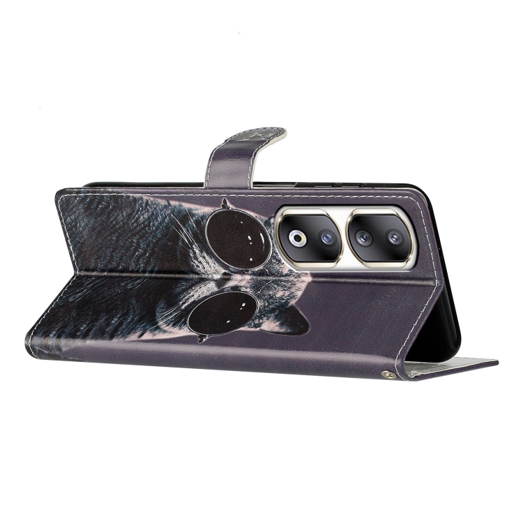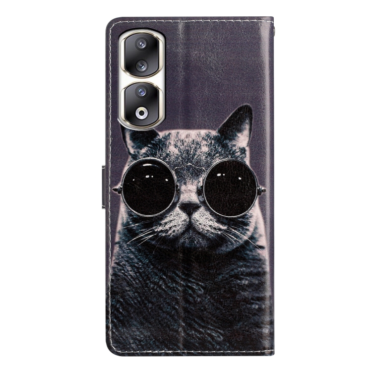 Funda de Cuero para Honor 90 Pro con Dibujo Coloreado Gato con Gafas de Sol