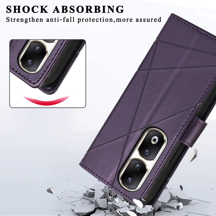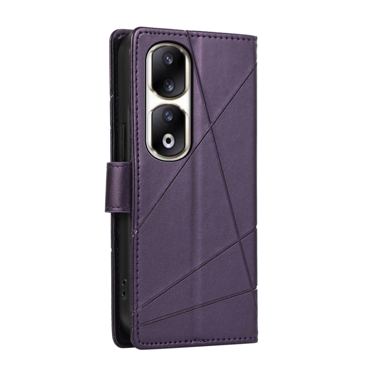 Funda para Teléfono Honor 90 Pro PU con Línea en Relieve y Textura de Cuero Genuino (Púrpura)