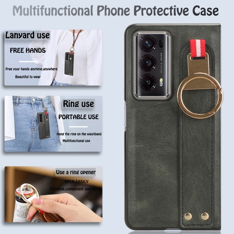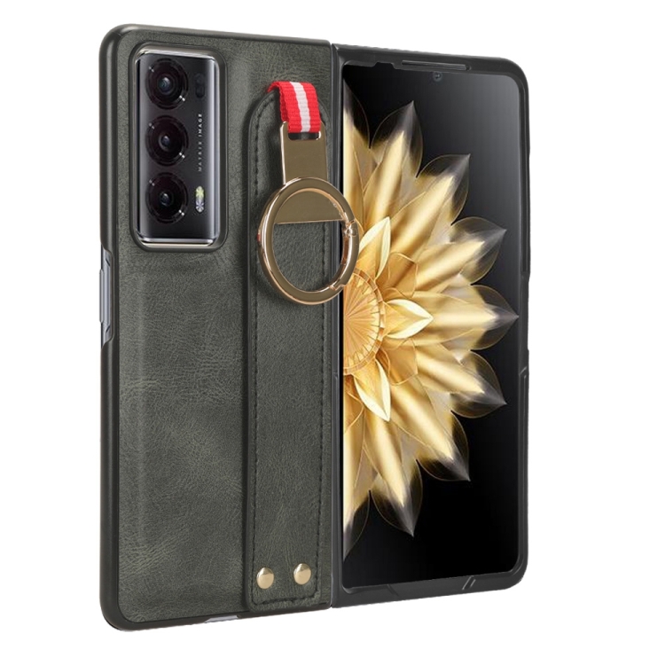 Funda Trasera de Cuero para Honor Magic V2 con Pulsera (Verde)