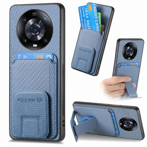 Funda para Honor Magic4 Pro con Soporte Plegable y Bolsa para Tarjetas de Fibra de Carbono (Azul)