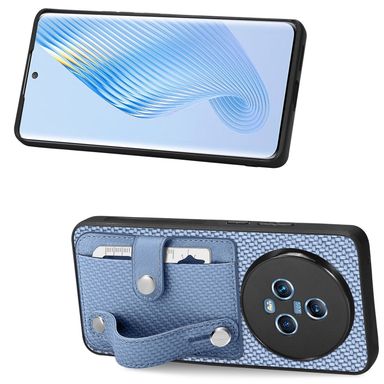 Muñequera Kickstand Monedero Contraportada para Honor Magic5 con Herramienta Cuchillo (Azul)
