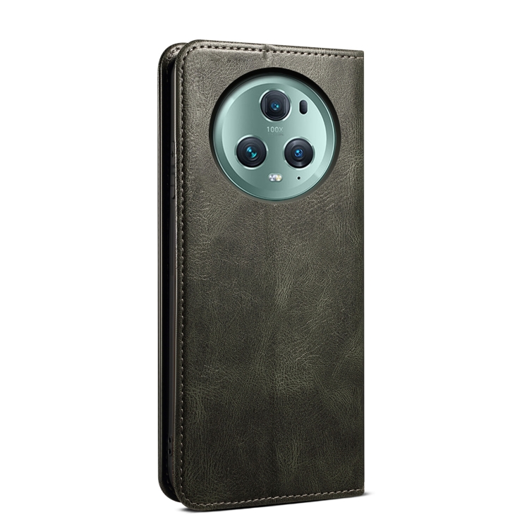 Funda de Cuero para Honor Magic5 Oil Wax Crazy Horse Texture para Teléfono (Verde)
