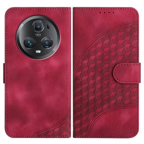 Funda de Cuero para Honor Magic5 Pro Yx0060 con Relieve y Cabeza de Elefante con Cordón (Rojo Rosa)