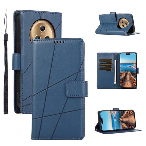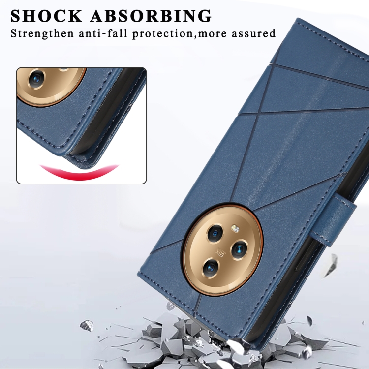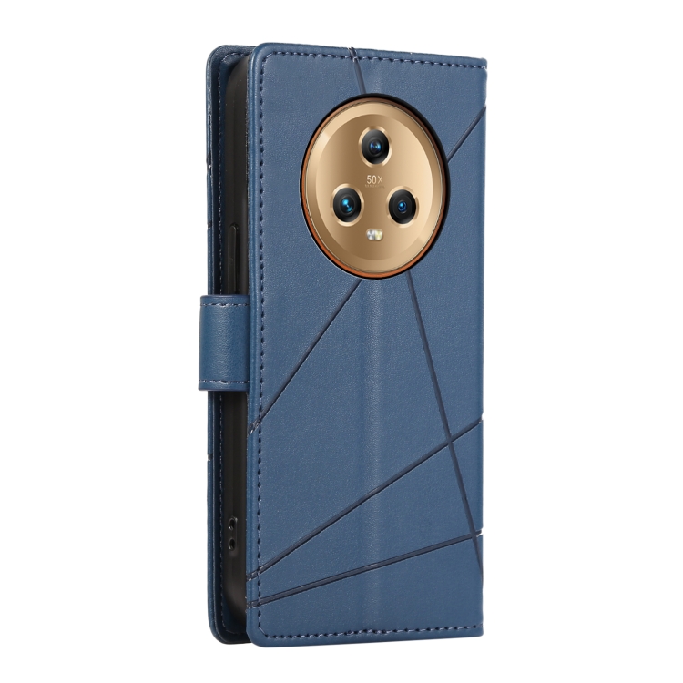 Funda para Honor Magic5 Pu con Línea en Relieve y Textura de Cuero Genuino (Azul)