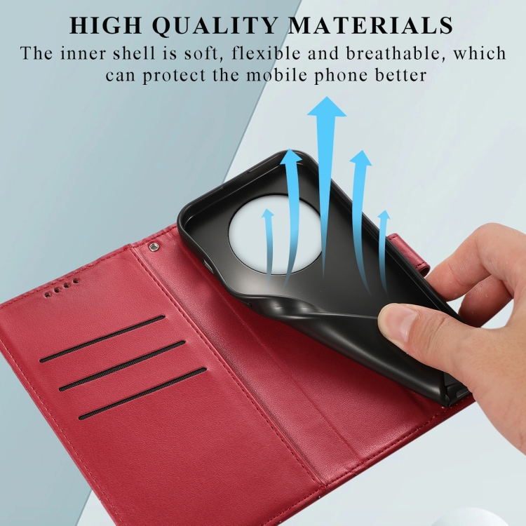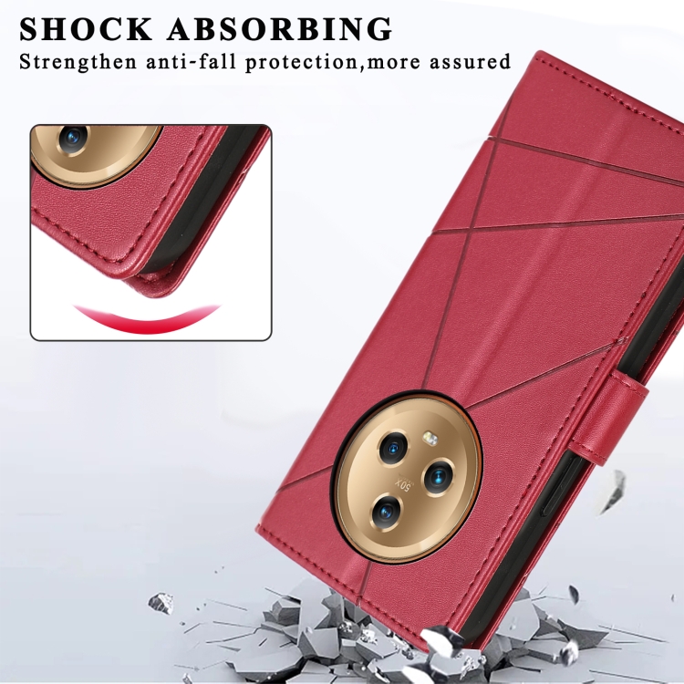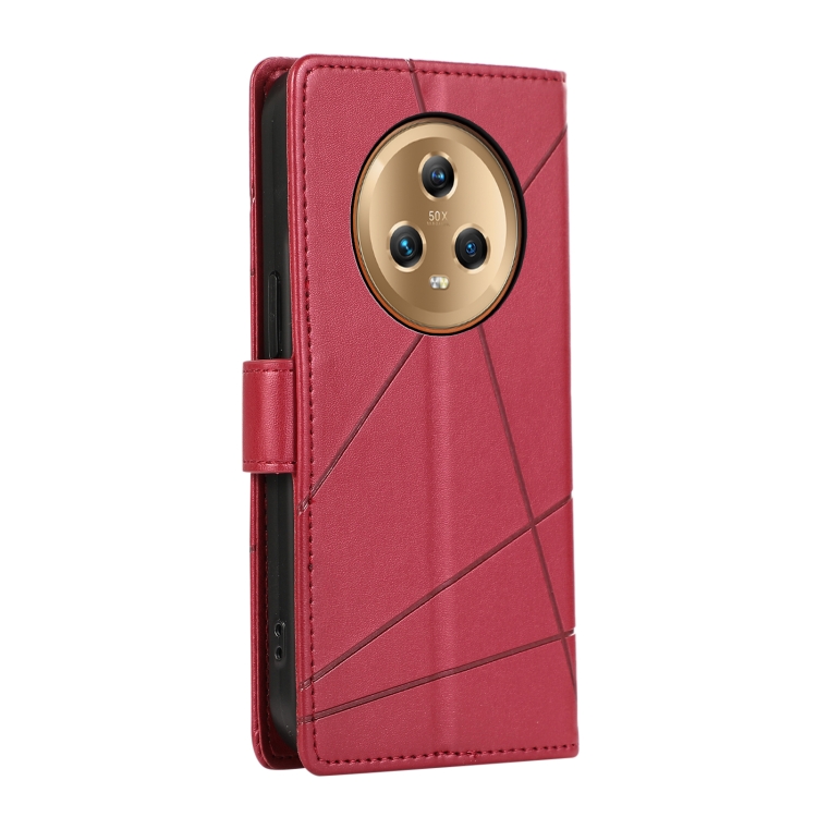 Funda para Honor Magic5 PU con Línea en Relieve y Textura de Cuero Genuino (Rojo)